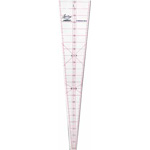 The perfect ruler for circular and semi-circular designs and quilts. 45° and 60° markings allow wedges to be accurately cut at these angles. Featuring clear 1⁄4″ seam allowance printed on the four edges. Laser cut for an accurate and smooth finish. White frosted backing. Red grid with black writing.