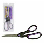TITECH® 9” Serrated Sharp Edge Tailors Scissors have serrated blades that pull the fabric to the scissors and hold it in place rather than pushing it like traditional scissors do. This design is excellent for sheer or slippery fabrics because it gently grips the fabric for a cleaner cut. Serrated edge scissors are very sharp and strong, making them ideal for cutting multiple layers of fabric with ease. The handles have a contoured grip, designed for comfort and balance. TITECH® Serrated Sharp Edge Scissors feature long lasting, light-weight, stainless steel, Titanium coated blades.