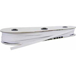 A general all purpose elastic. Excellent “stretchability.” Narrows when stretched. Avoid stitching through. Use in a casing for waistbands, sleeves and necklines. White.